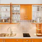 Inoltre, c'è una cucina completamente attrezzata insieme a una lavastoviglie e un frigo.